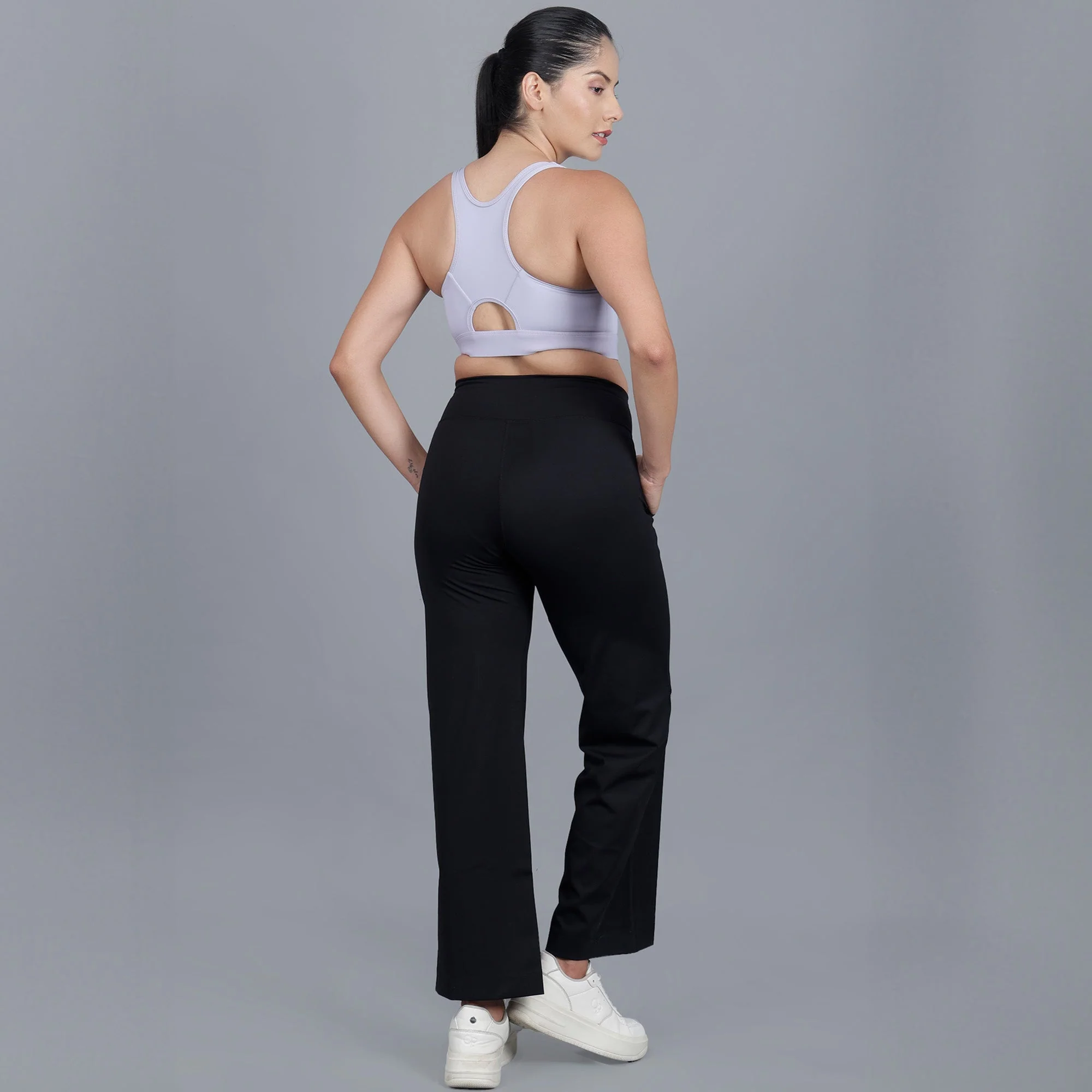 Chiclo Women's Black Wide Leg Pants With Lavender Sports Bra