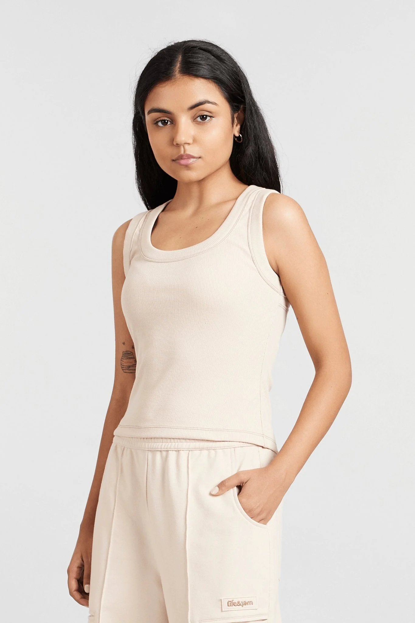 Styling Tip: Style the Marshmallow tank with pastel joggers or tailored shorts for a cozy, laid-back look. Throw on an oversized cardigan or zip-up hoodie to complement the soft colour, and add some retro sneakers for a playful, on-trend outfit. This tank’s high-stretch fabric and ribbed texture make it a standout piece that transitions seamlessly from lounging to out-and-about.