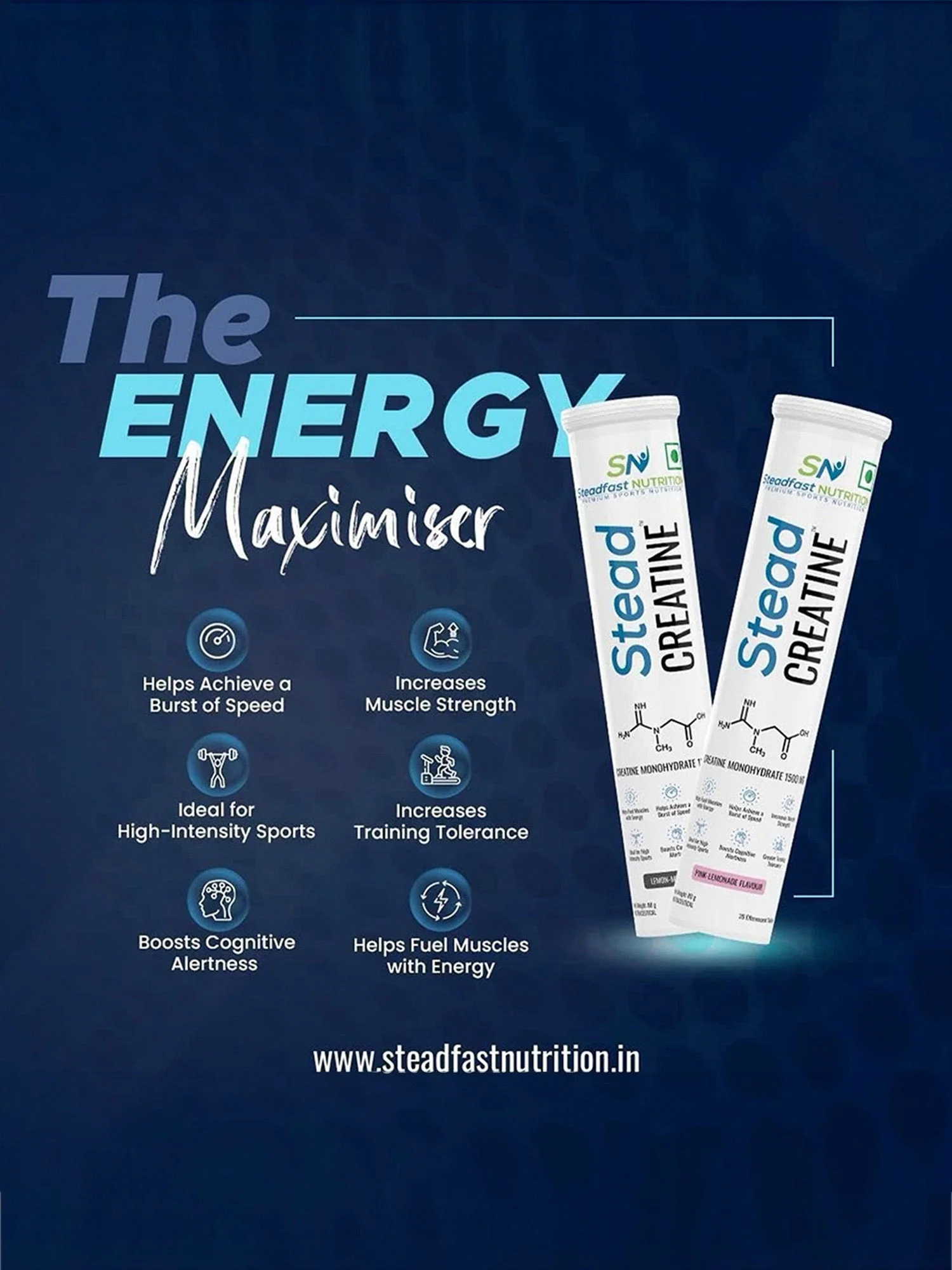 Creatine monohydrate is a popular nutritional ergogenic aid for athletes that provides the energy burst needed to perform high-intensity exercise. Each tablet of SteadCreatine™ contains 1500 mg of Creatine Monohydrate, which is safe and easy to consume.